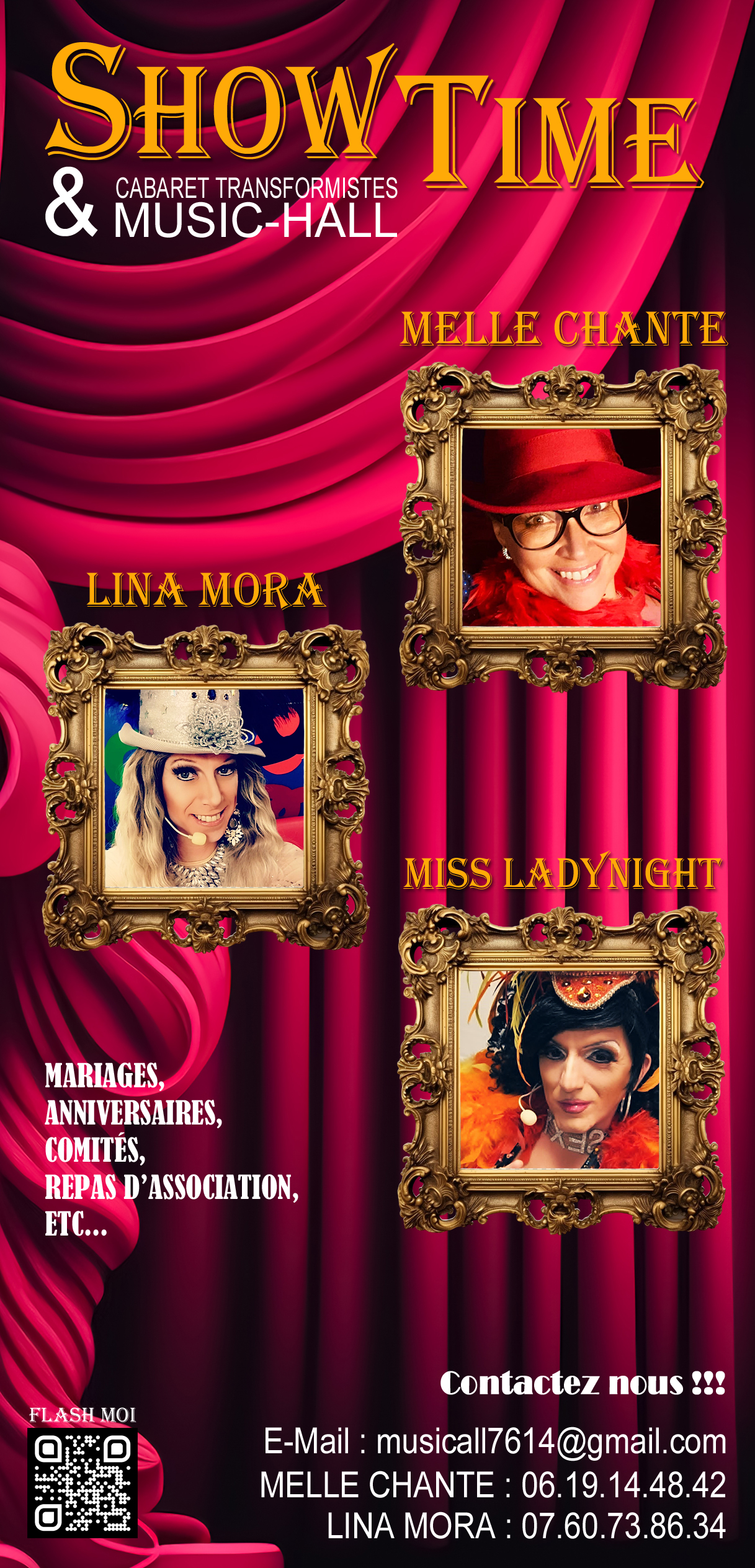 Lina Mora, Melle Chante et Miss Ladynight sont nos artistes de Show Time.